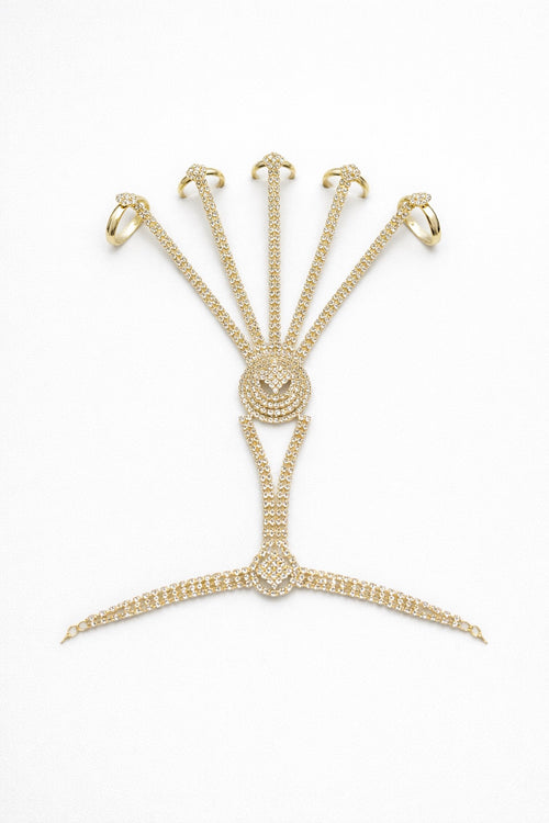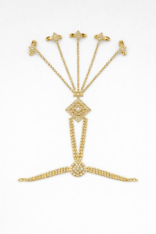 Parure dorée avec bijou de tête, collier et boucles d’oreilles ornés de strass – plusieurs couleurs disponibles -